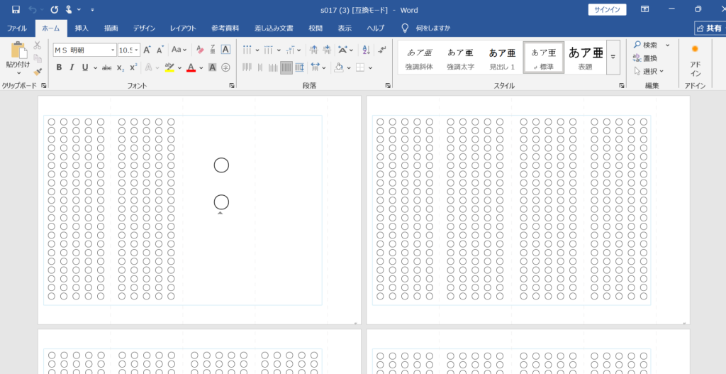 マルアイのサイトに印刷用テンプレートが用意されているのでダウンロードして印刷用データを作成するのですが、作った文章をコピペする際に注意して欲しいのが、〇の数と間隔です。